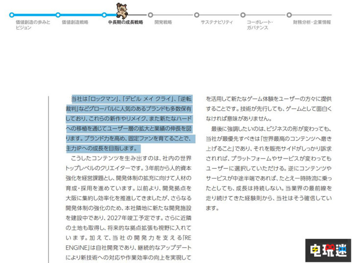 为了达成这一点,卡普空将进一步增强开发与研发能力。目前卡普空计划扩大大阪开发中心并且计划在2027年建设一个新的开发设施。在技术方面,卡普空将会进一步更新RE引擎,为新游戏项目提供技术支持。